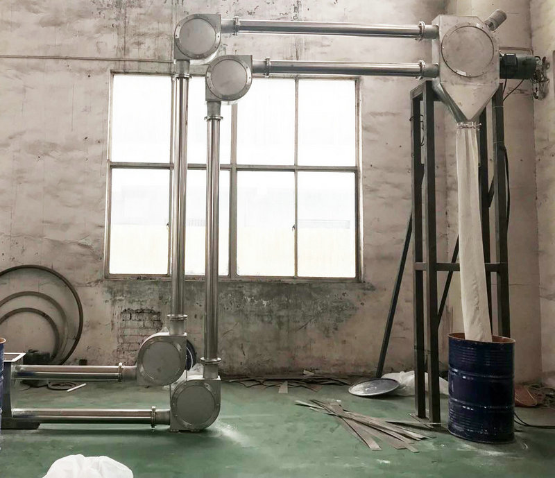 管鏈輸送機可以連續輸送粉狀、膏狀、小顆粒狀及小塊狀等散狀物料,也可以水平、傾斜和垂直組合輸送。