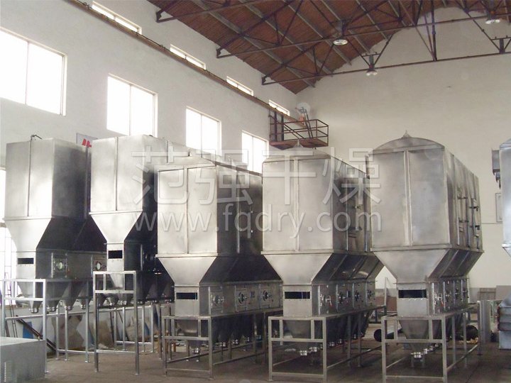 潔凈的熱風(fēng)經(jīng)閥板分配進(jìn)入床體內,從加料器進(jìn)入的濕物料被熱風(fēng)形成沸騰狀態(tài)。由于熱風(fēng)與物料廣泛接觸,增強了傳熱傳質(zhì)的過(guò)程,因此在較短時(shí)間內就可干燥。如用連續型,物料從床體的一頭進(jìn)入,經(jīng)過(guò)幾十秒至幾分鐘沸騰干燥,自動(dòng)從床體另一頭流出。本設備一般進(jìn)行負壓操作。