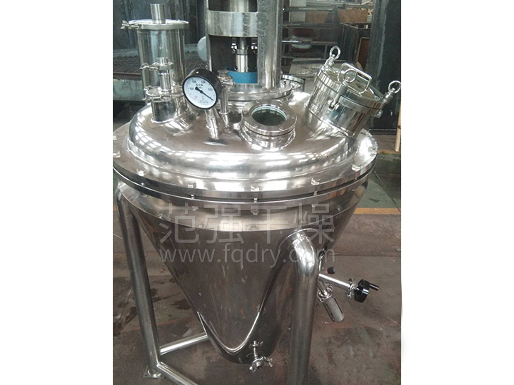 B帶加熱夾套的下錐體:內表面光滑、無(wú)死角,可以使物料得到充分干燥。出料時(shí)借助攪拌器的旋轉,使出料迅速、干凈。